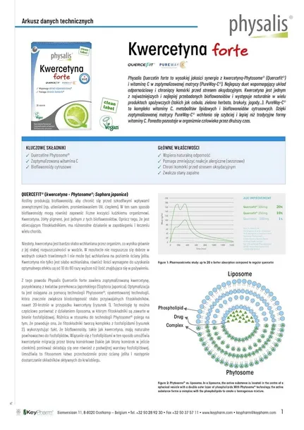 Physalis Kwercetyna forte to wysokiej jakości kompleks z kwercetyną-Phytosome® (Quercefit®) i witaminą C w zoptymalizowanej matrycy (PureWayC®). Witamina C wspiera prawidłowe funkcjonowanie układu odpornościowego i metabolizm energetyczny. Ponadto pomaga zmniejszyć zmęczenie, utrzymać zdrowie układu nerwowego i chronić komórki.